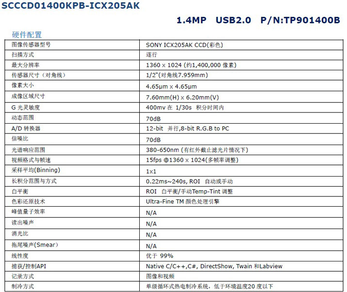 140萬像素,1/2” SONY彩色CCD傳感器,USB2.0 C接口