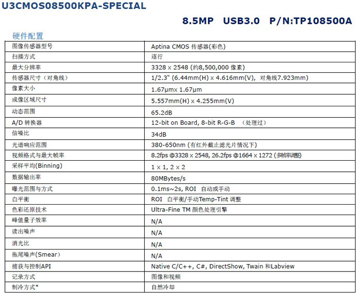 850萬像素,1/2.3” Aptina 彩色CMOS傳感器,USB3.0 C接口