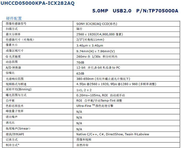 500萬像素,2/3” SONY彩色CCD傳感器,USB2.0 C接口
