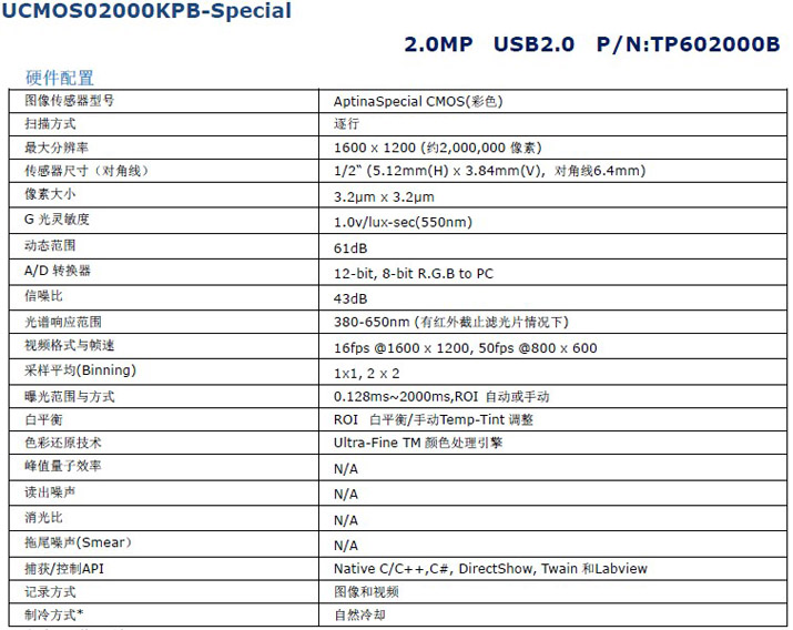 200萬像素,1/2” Aptina彩色CMOS傳感器,USB2.0 C接口