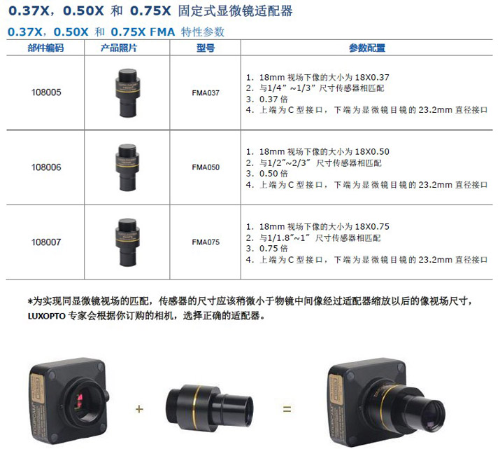 不同傳感器尺寸配置不同倍率的相機(jī)適配器;