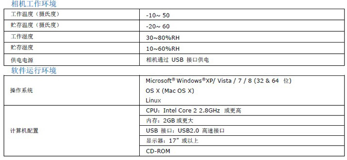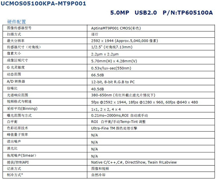 500萬像素,1/2.5” Aptina彩色CMOS傳感器,USB2.0 C接口
